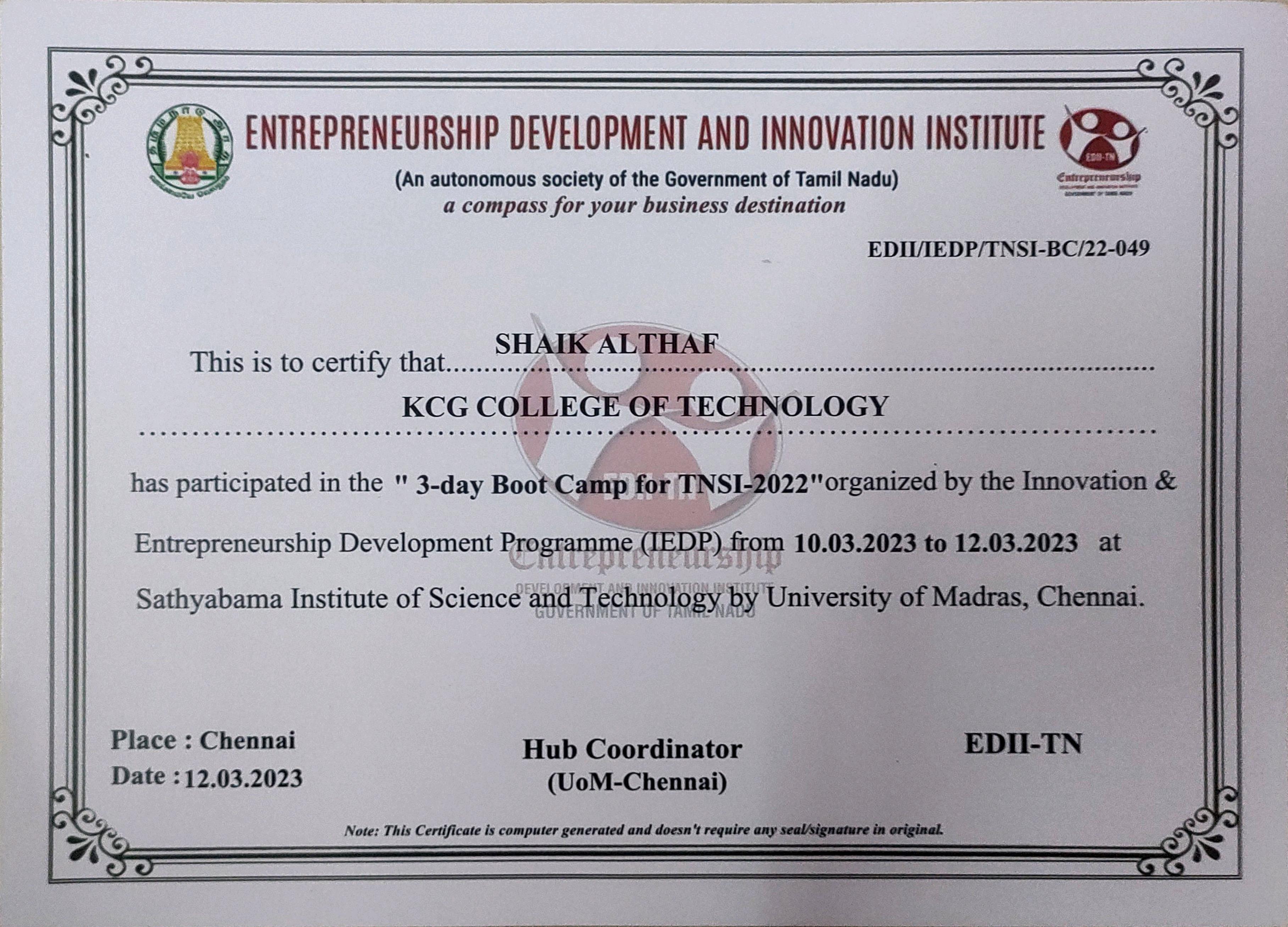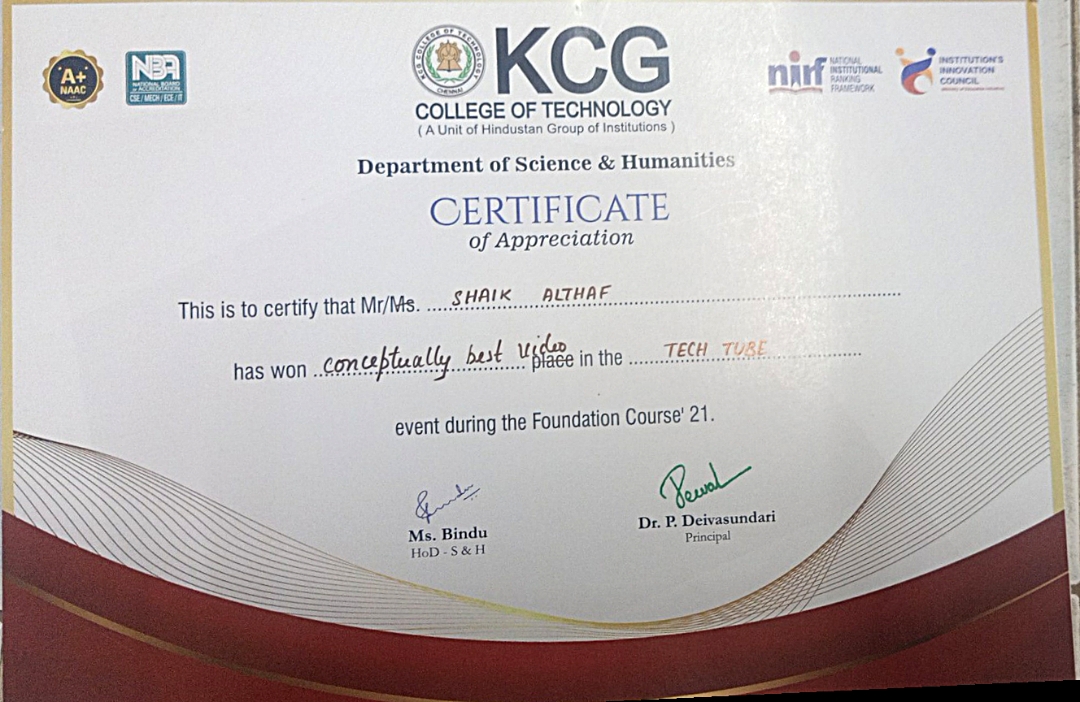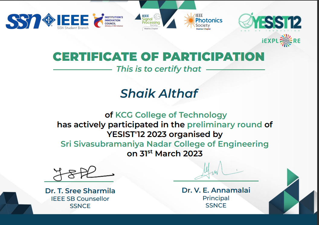 B.E Electrical Engineering - KCG College of Technology, Chennai