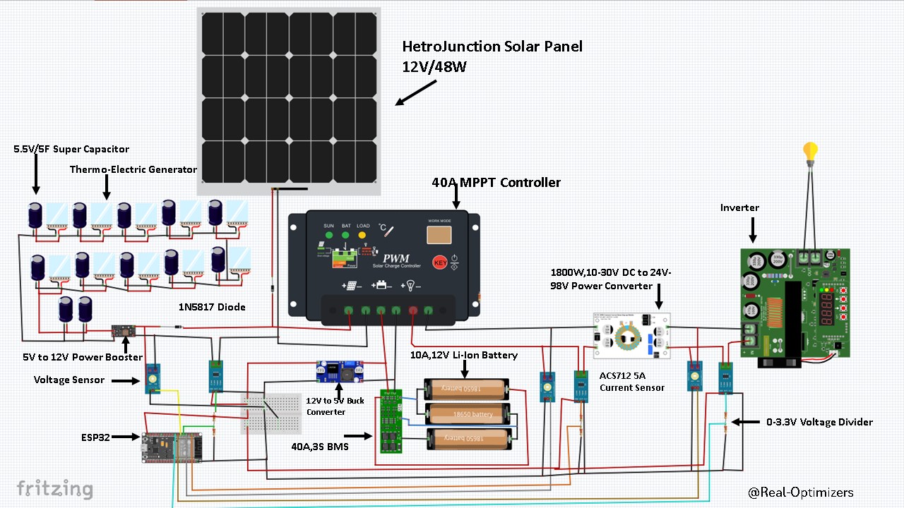 Our project combines the power of thermo-electric generators (TEGs) with high-efficiency heterojunction solar panels. The system is designed to maximize power generation and manage thermal energy efficiently. The project includes advanced monitoring, control, and Machine Learning (ML) integration for optimal performance.